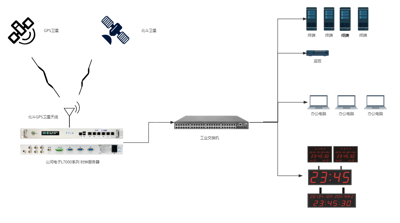 融合GPS与北斗双模授时定位技术,可提供单北斗,确保在全球范围内均能精确捕获时间信号,实现微秒级的时间校准,有效避免因时间误差导致的运营混乱或安全隐患。